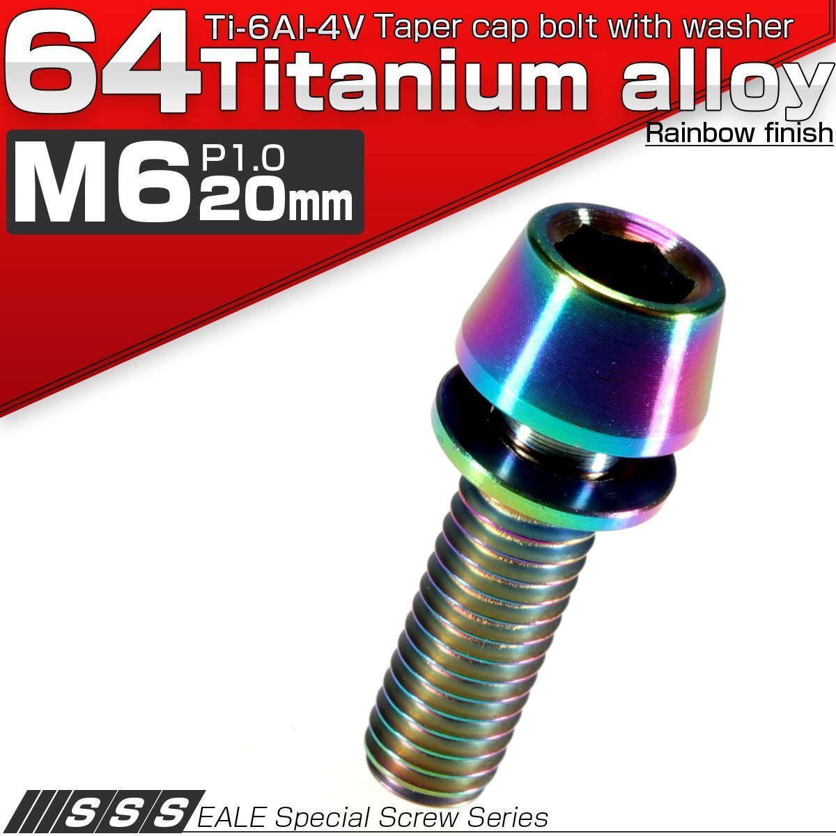 > 64チタン M6×20mm P=1.00 ワッシャー組込テーパーヘッド キャップボルト 平座金付き 六角穴付ボルト レインボー(焼チタン風) JA157