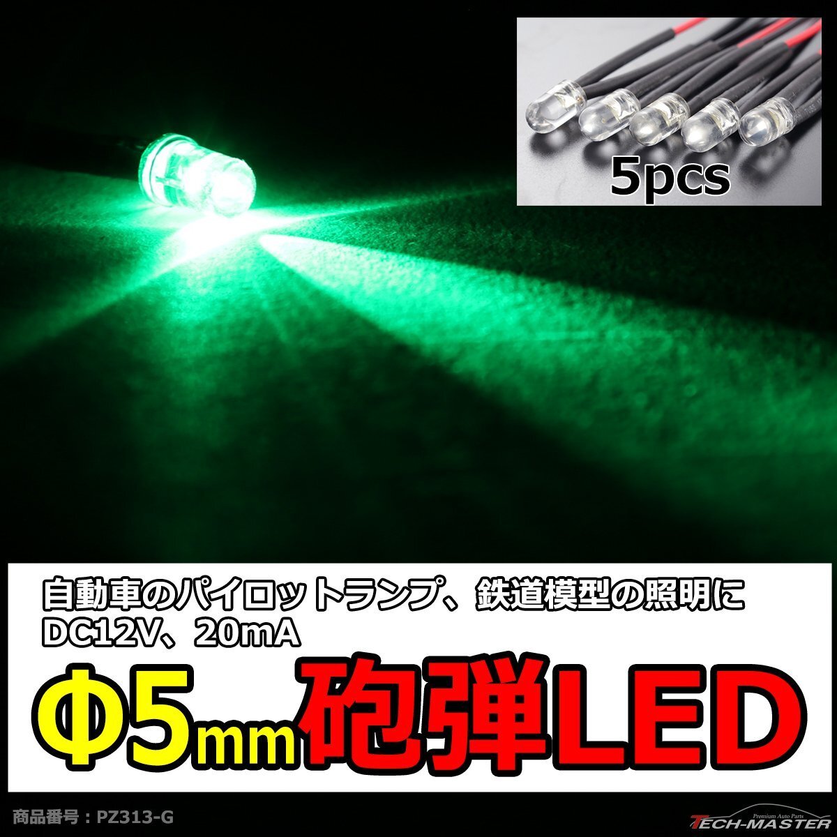 - φ5mm 砲弾LED 5本セット 鉄道模型 Nゲージ HOゲージ 照明 街灯 などに グリーン PZ313-G