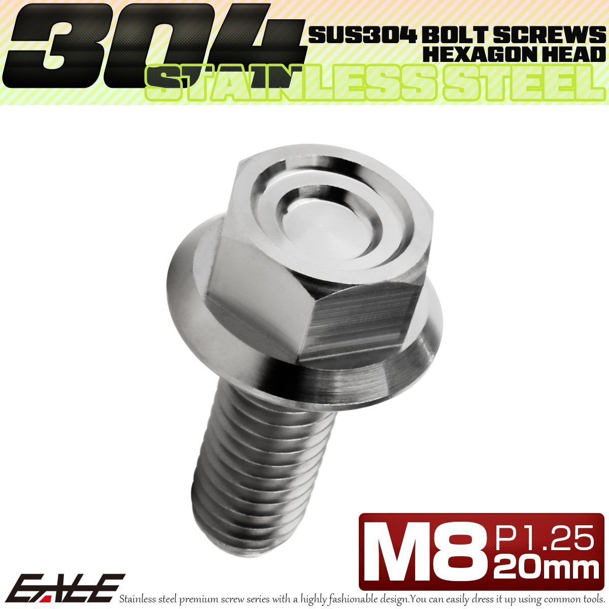 - M8×20mm P1.25 フランジ付き 六角ボルト カスタムヘッド SUS304 ステンレス シルバー TB1320
