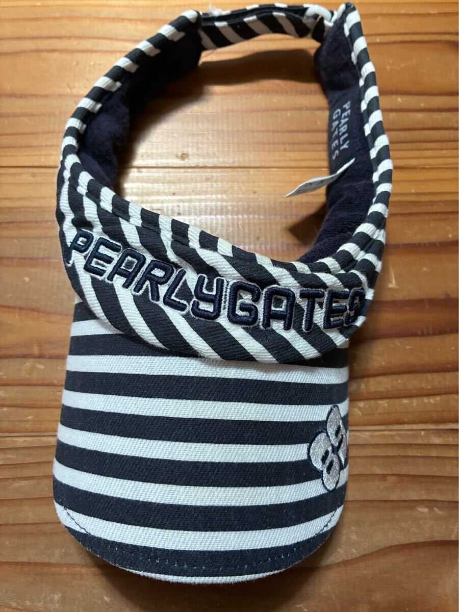 - 送料込み!! PEARLY GATES ゴルフサンバイザー ボーダー サンバイザー 黒白 モノトーン 帽子 GOLF ゴルフウェアー
