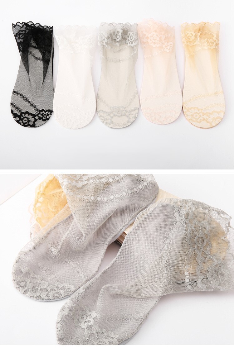 - 【レディース コットンレース仕様 ソックス 5色セット】レディース 靴下 5色セット レース仕様 ソックス バンプス スニーカー サンダル◎