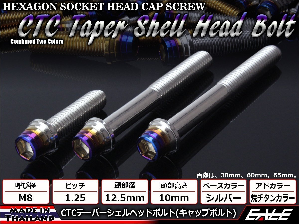 > M8×20mm ステンレス 2色テーパーシェルヘッドボルト キャップボルト フレームやブレーキ周りに シルバー/焼チタンカラー TB0871