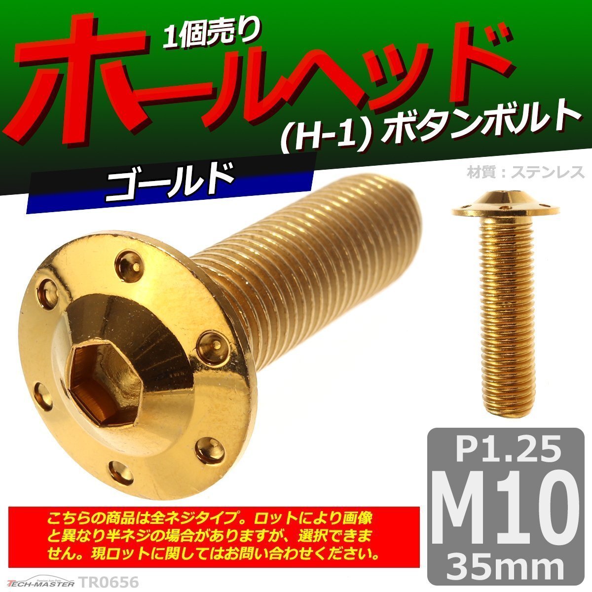 > M10×35mm P1.25 ボタンボルト ホールヘッド H-1 ステンレス 車/バイク/自転車 ドレスアップ パーツ ゴールド 1個 TR0656