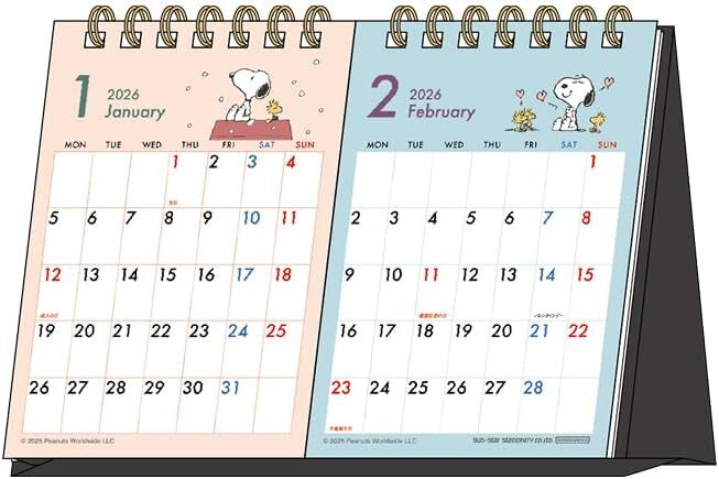 - サンスター文具 スヌーピー 2026年 カレンダー 卓上 PEANUTS スヌーピー S8521786