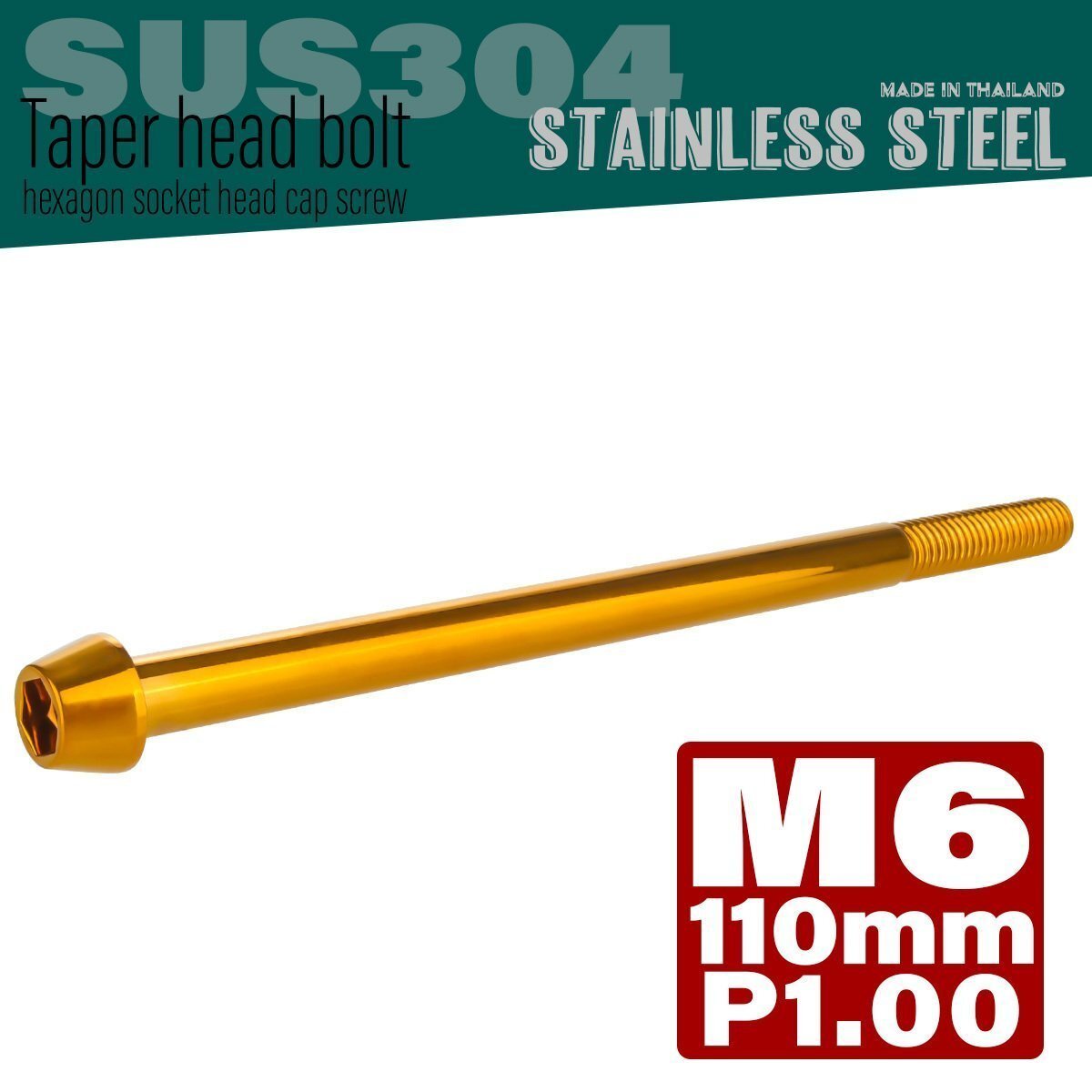 > M6×110mm P1.00 ゴールド テーパーヘッド キャップボルト SUS304 ステンレス 六角穴付きボルト TB0091