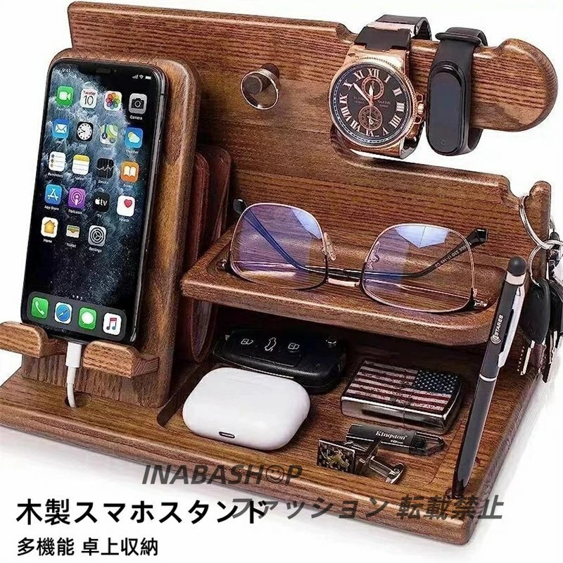 - 卓上収納箱 木製 卓上チェスト インテリア 小物入れ ギフト プレゼント電話ドッキングステーション ウォレットスタンド 時計オーガナイザー