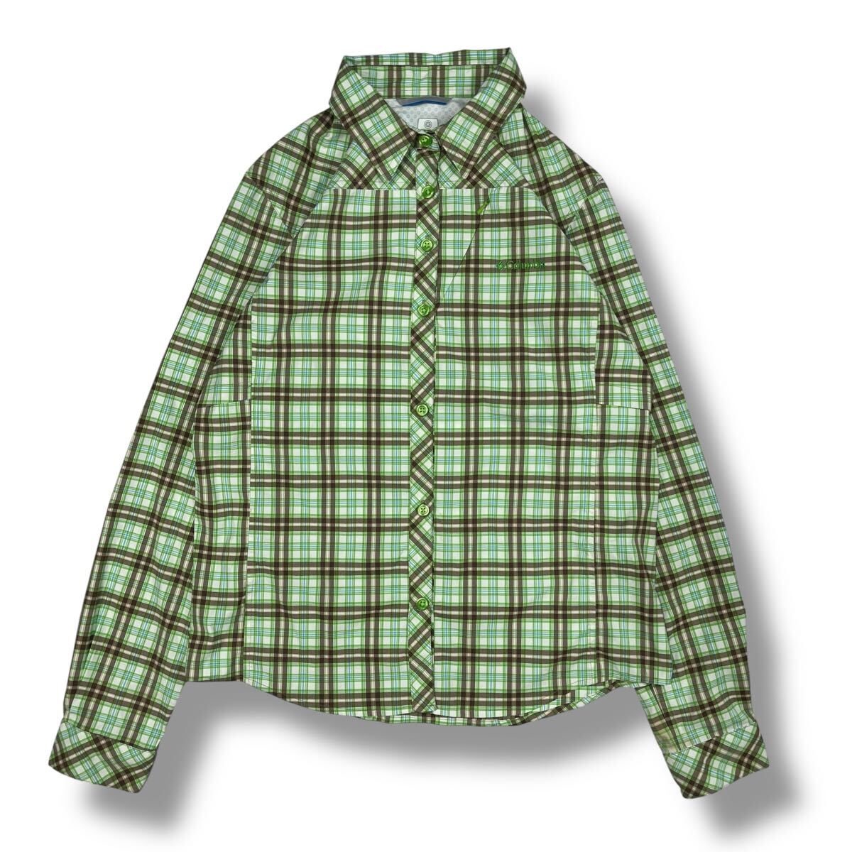 - (TK0903) Columbia コロンビア 長袖 チェック シャツ グリーン OMNI SHIELD アウトドア 定番 ロゴ 刺繍 XL