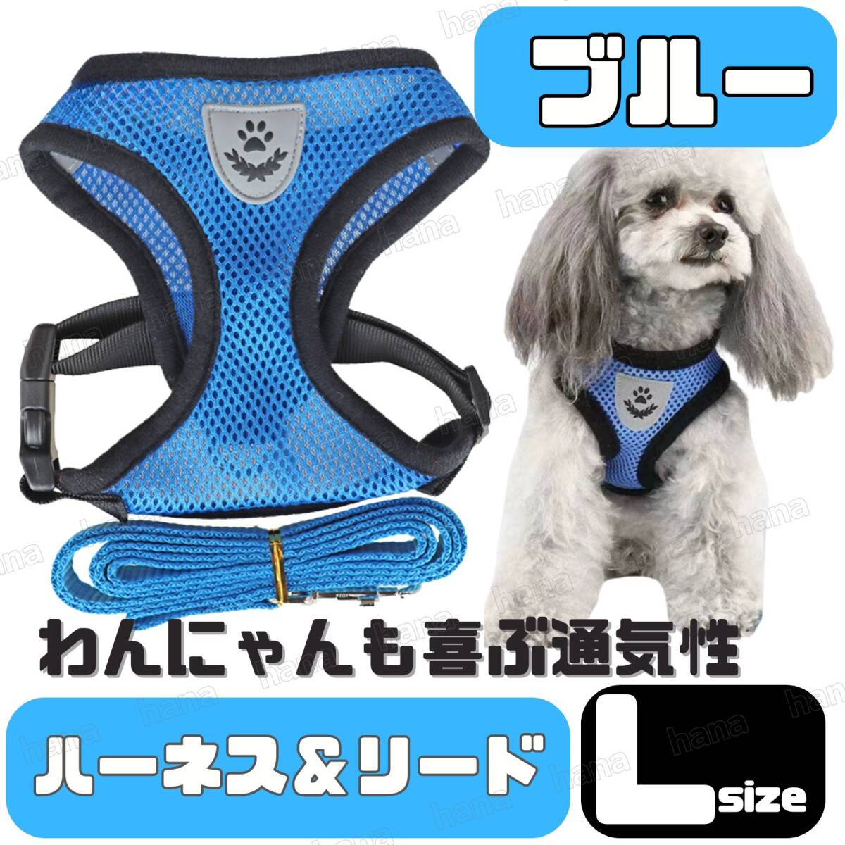- ハーネス リード メッシュ ペット 犬用 猫用 散歩 抜けない 脱げない 首輪 胴輪 超小型犬用 小型犬用 Lサイズ ブルー 青