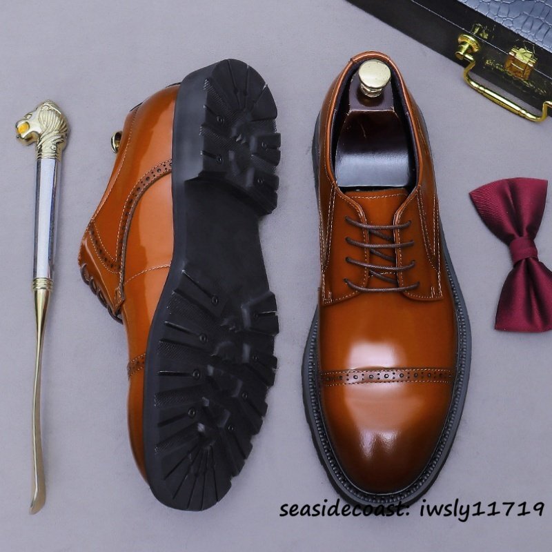> 定価10万■新品 メンズ ビジネスシューズ 最上級 本革 レザーシューズ 職人手作り 彫り 革靴 紳士靴 高級牛革 フォーマル ブラウン 27.5cm