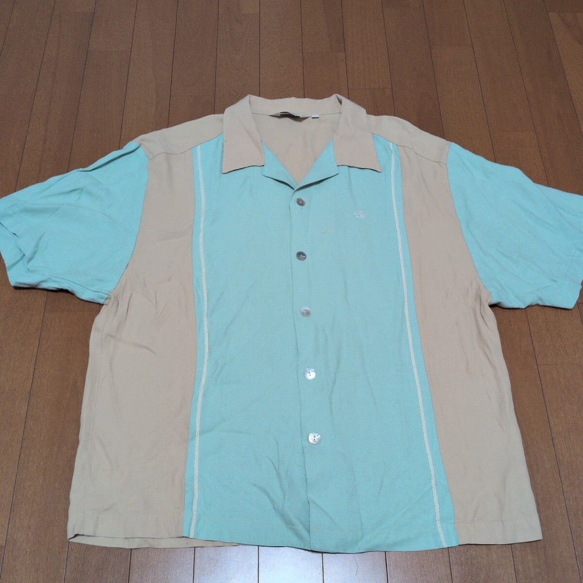- 80s Da Vinci ダヴィンチ レーヨンシャツ ツートンカラー USA製 ヴィンテージ アメカジ ワンポイントロゴ アメカジ 古着 オープンカラー