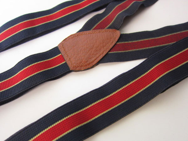 - 伸縮素材/ストライプ×レザー/ボタンタブ式Y型 サスペンダー/紺系ベース/メンズ/Yバック/ブレイシーズ/ビジネス/バンカー/投資家/D98