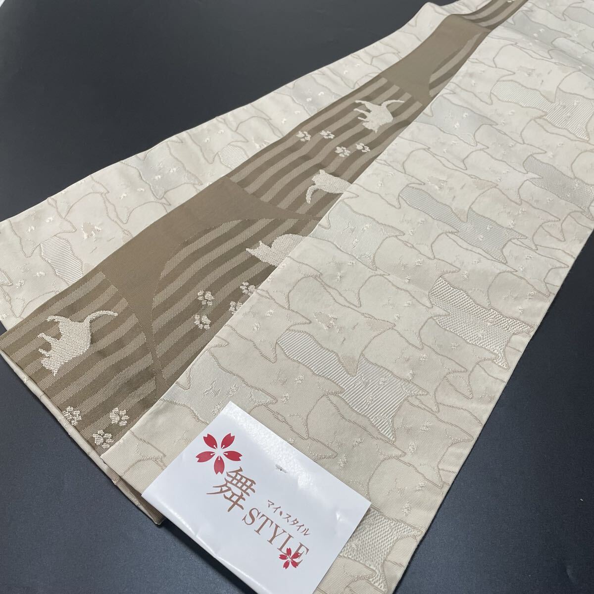 - #H939 新品 半幅帯「舞STYLE」リバーシブル 洗える帯 ポリエステル 猫 日本製 長尺 可愛い おしゃれ着【wellriver】