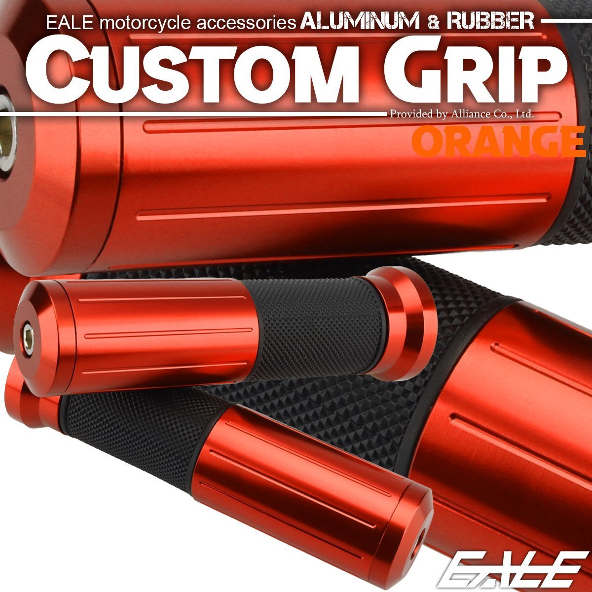 - バイク グリップ ハンドル アルミ ラバー バーエンド付き 22.2mm用 オレンジ 左右セット カスタム ドレスアップ S-578-O