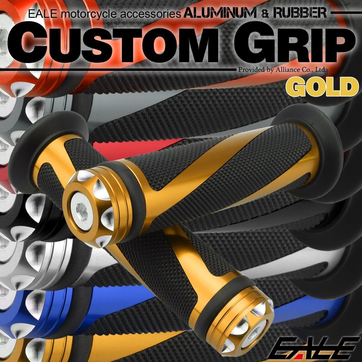 - バイク グリップ ハンドル アルミ ラバー バーエンド付き 22.2mm用 ゴールド 左右セット カスタム ドレスアップ S-575-G