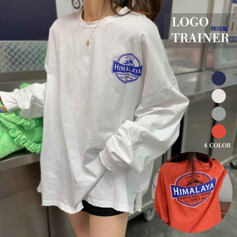 - Tシャツ レディース 長袖 韓国 XL ネイビー