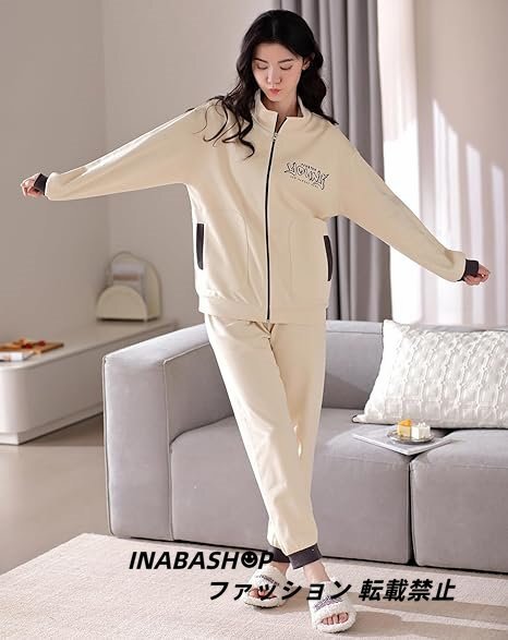 - 春秋 綿100 ジップアップパーカー セットアップ レディース ジャージ 上下セット ジョガーパンツ ファスナースウェット 2点セット 韓国風