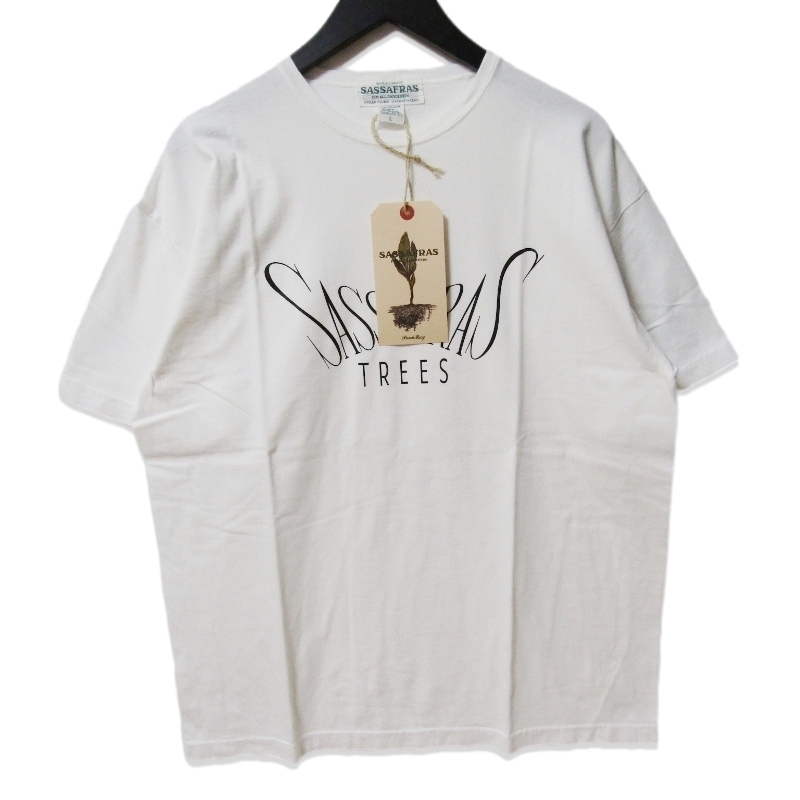 > 未使用 SASSAFRAS ササフラス 半袖Tシャツ SF-242199 SASSAFRAS TREES T 1/2 ロゴプリント コットン ホワイト 白 L タグ付き 27111023