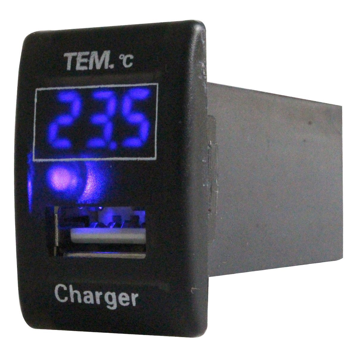 - 『スズキA』 MRワゴン MF33S H23.1~ LED/ブルー 温度計+USBポート 充電 12V 2.1A 増設 パネル USBスイッチホールカバー 電源