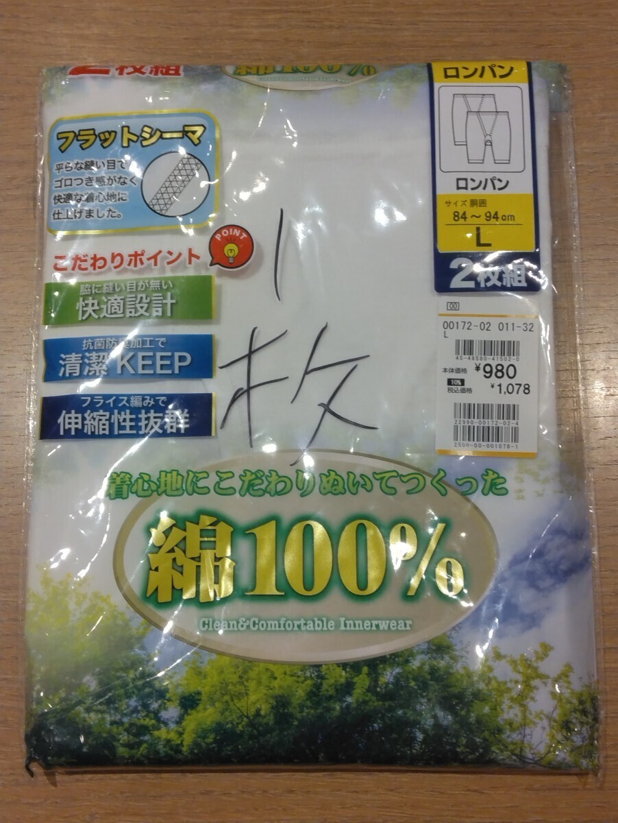 - 《使いかけ》メンズ ロンパン 1枚 Lサイズ 肌着 インナー ロングパンツ 紳士物 c130/401