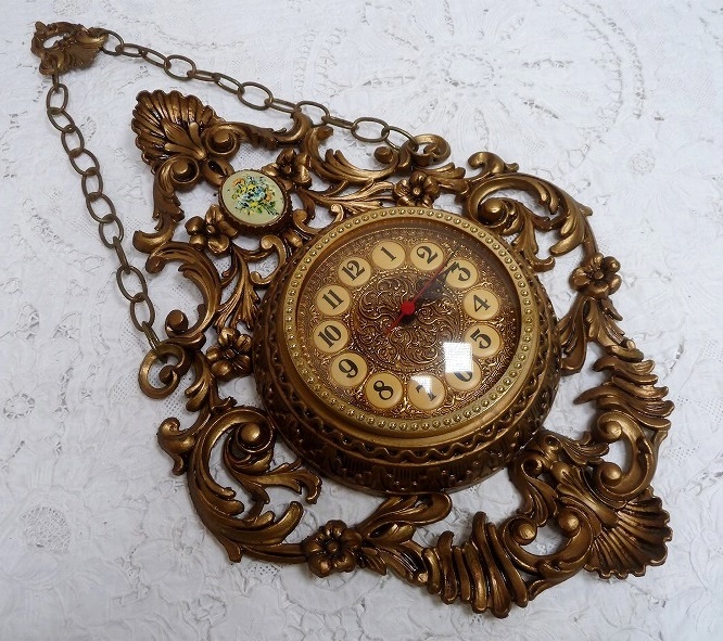 > (☆BM)イタリア製/M.O.D DEPOSITATO 掛時計 三針 ヴィクトリアンレトロ ロココ調 アナログ ジャンク アンティーク 針時計