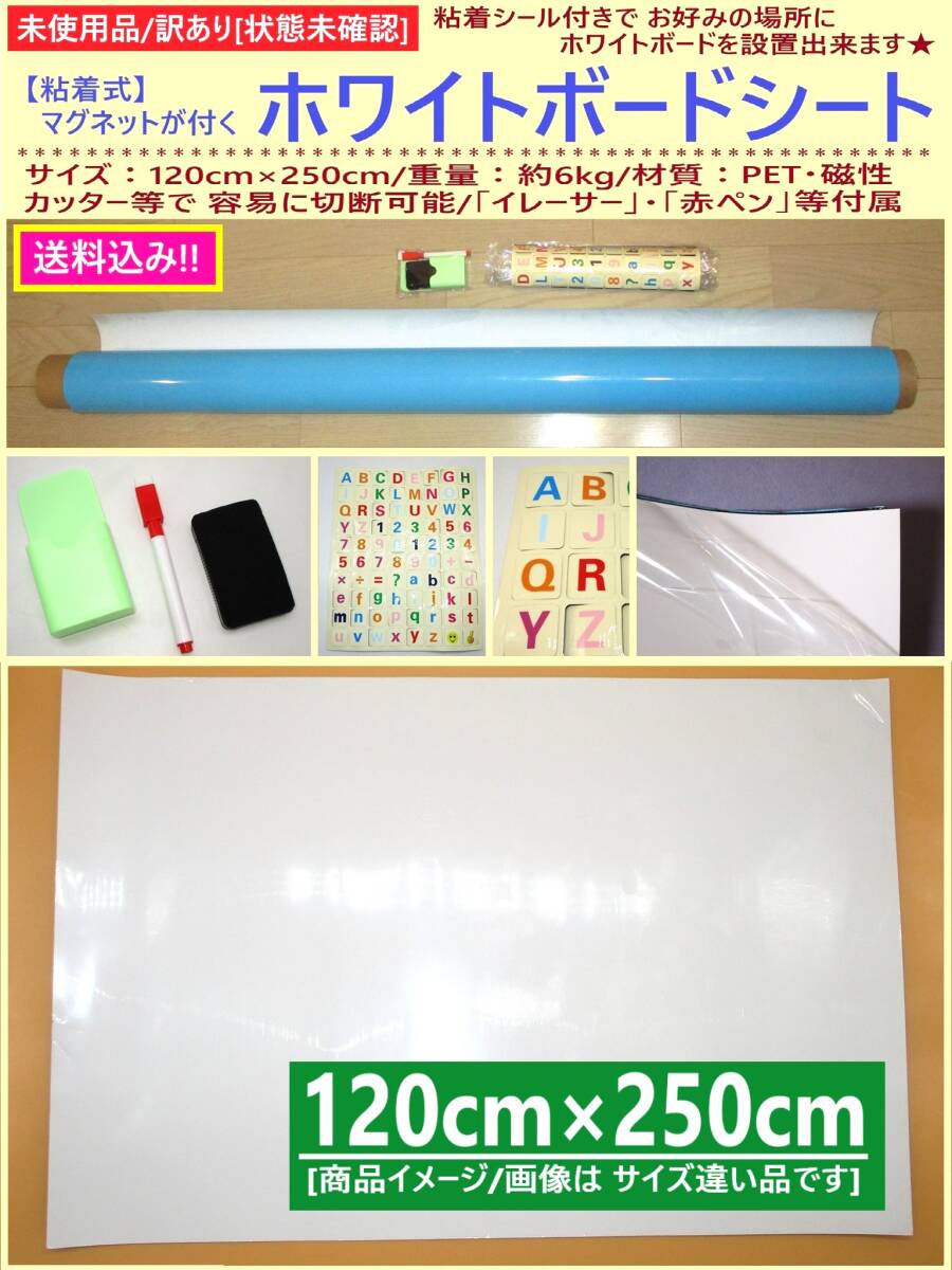 > 訳あり 未使用 状態未確認 粘着式 ホワイト ボード シート A 120cm×250cm 白板 カット可能 マグネット可 テープ付き 貼る 外箱なし 海外製