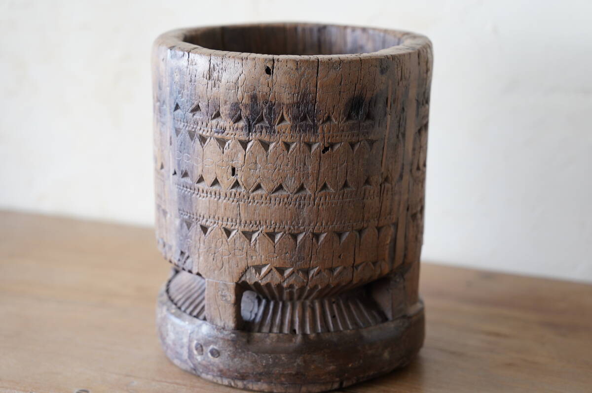 - 木彫り アンティーク 器 食器 民芸 古民芸 民具 古民具 プリミティブ 民族 くり抜き オブジェ インテリア インド 民藝 ①