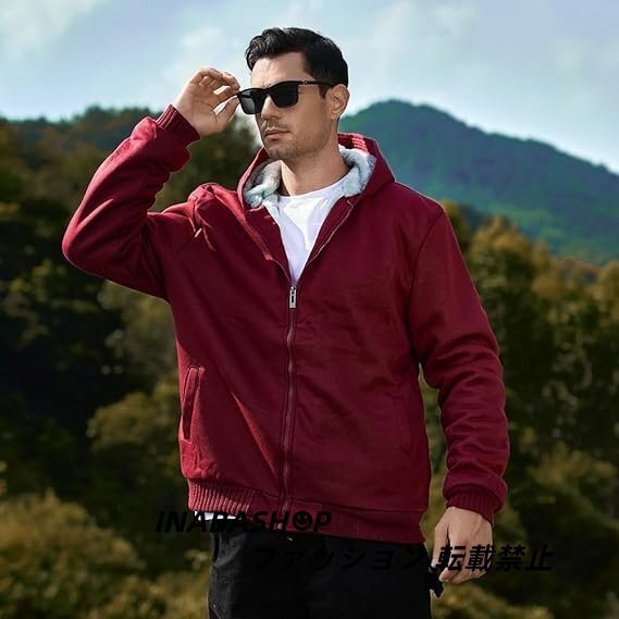 - 秋冬 長袖 プルオーバー ジップパーカー メンズ スウェット 裏ボアジャケット 厚手 アウター 裏起毛ジップアップ フード付き 暖かい 防寒