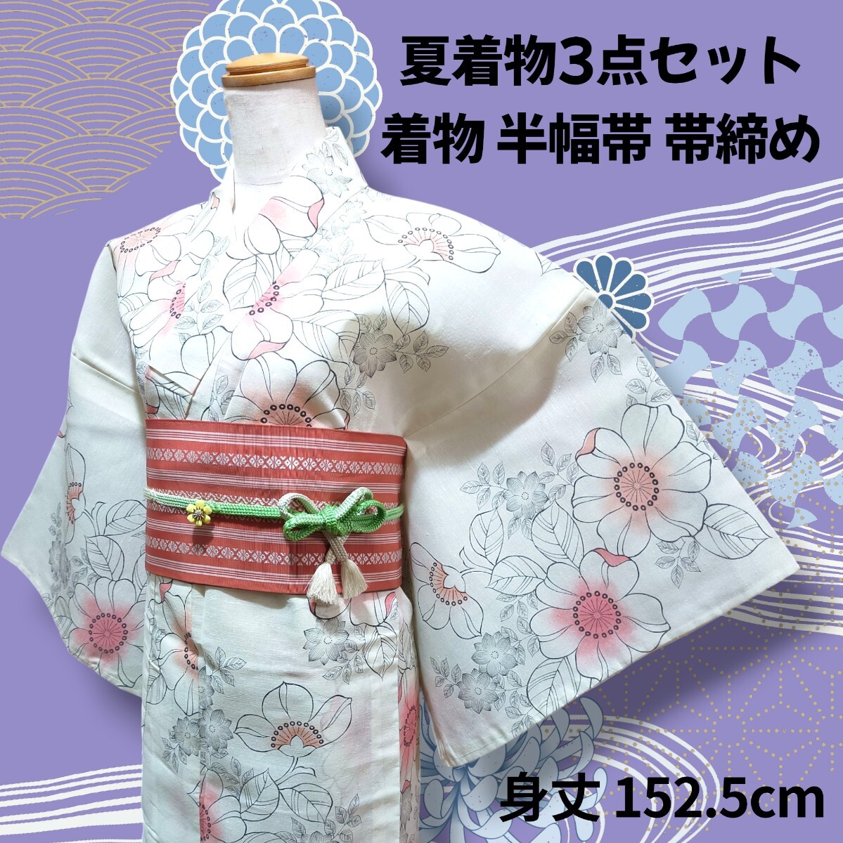 - お仕立て夏着物 3点セット 広衿お仕立て夏着物 身丈152.5cm 半幅帯 帯締め