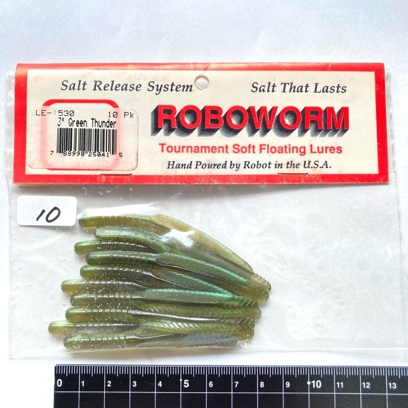 > 814672 新品 ロボワーム リーチ 3インチ 10本 #グリーンサンダー ROBOWORM LEECH バス釣り ダウンショット系