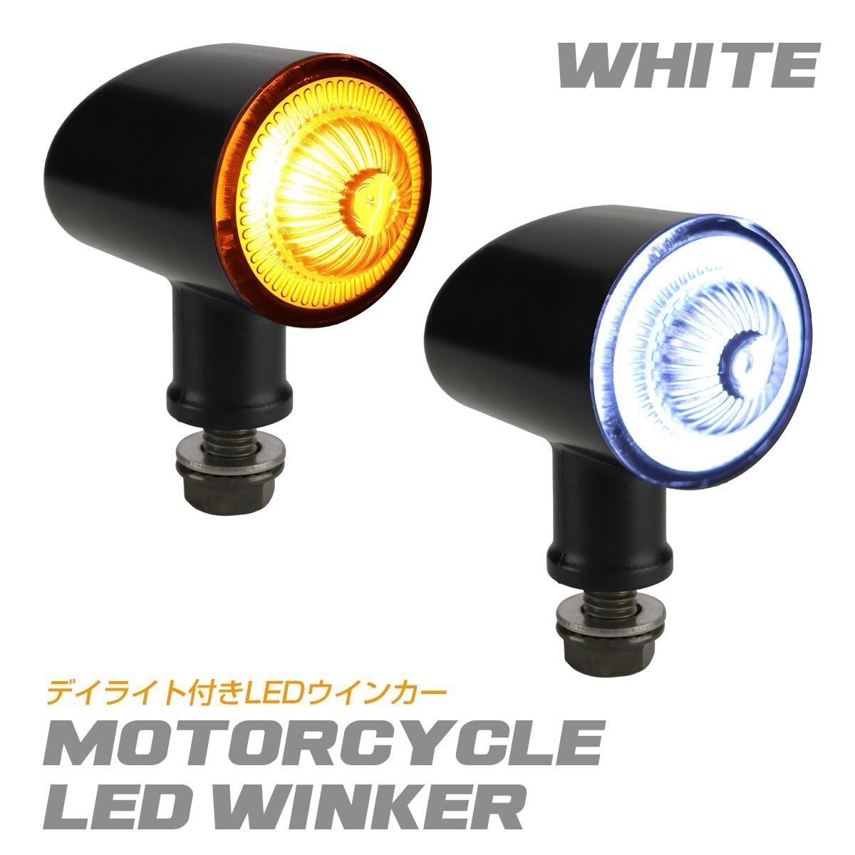 - バイク LED ウインカー デイライト マーカーランプ付き ホワイト 汎用 2個セット FZ507-W
