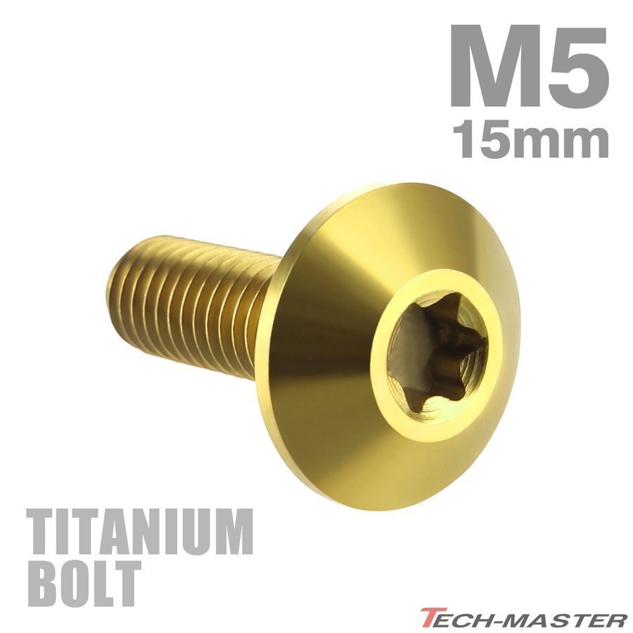 > M5×15mm 0.8 頭部径12mm 64チタン合金 テーパーヘッド トルクス穴 ボタンボルト ゴールドカラー 金色 車/バイク 1個 JA624