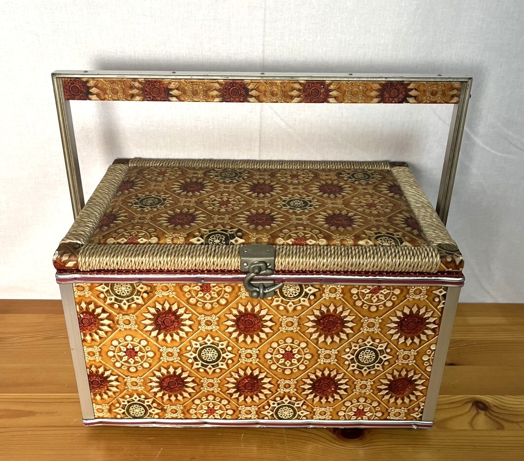 - 【S121】昭和レトロ/裁縫箱/化粧箱/メイクボックス/ソーイングボックス/アンティーク/小物入れ/レトロ/収納ボックス/中古/現状品