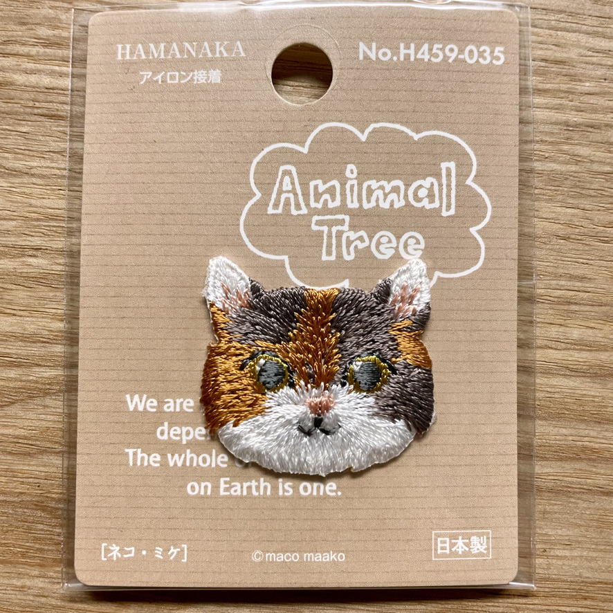 - ハマナカ 刺繍ワッペン アニマルツリー ネコ・ミケ アイロン接着 日本製