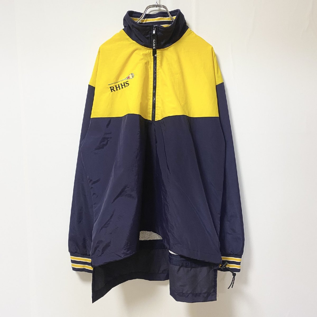 > 古着 used GAME SPORTWEAR 長袖ハーフジップナイロンジャケット プルオーバー 黄 ネイビー Mサイズ