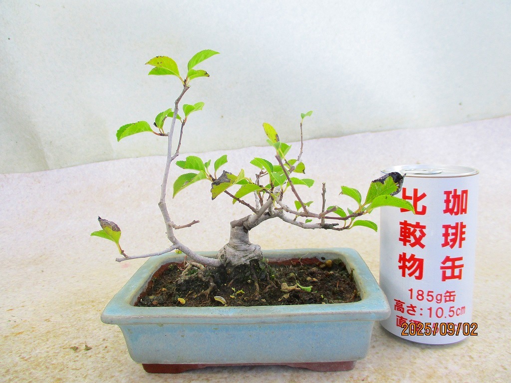- [緑の市場] ミニ盆栽 樹種不明(9208均釉長方鉢)全高:18㎝【小型送料】*同梱包対応「まとめて取引」厳守*60サイズ送料明記