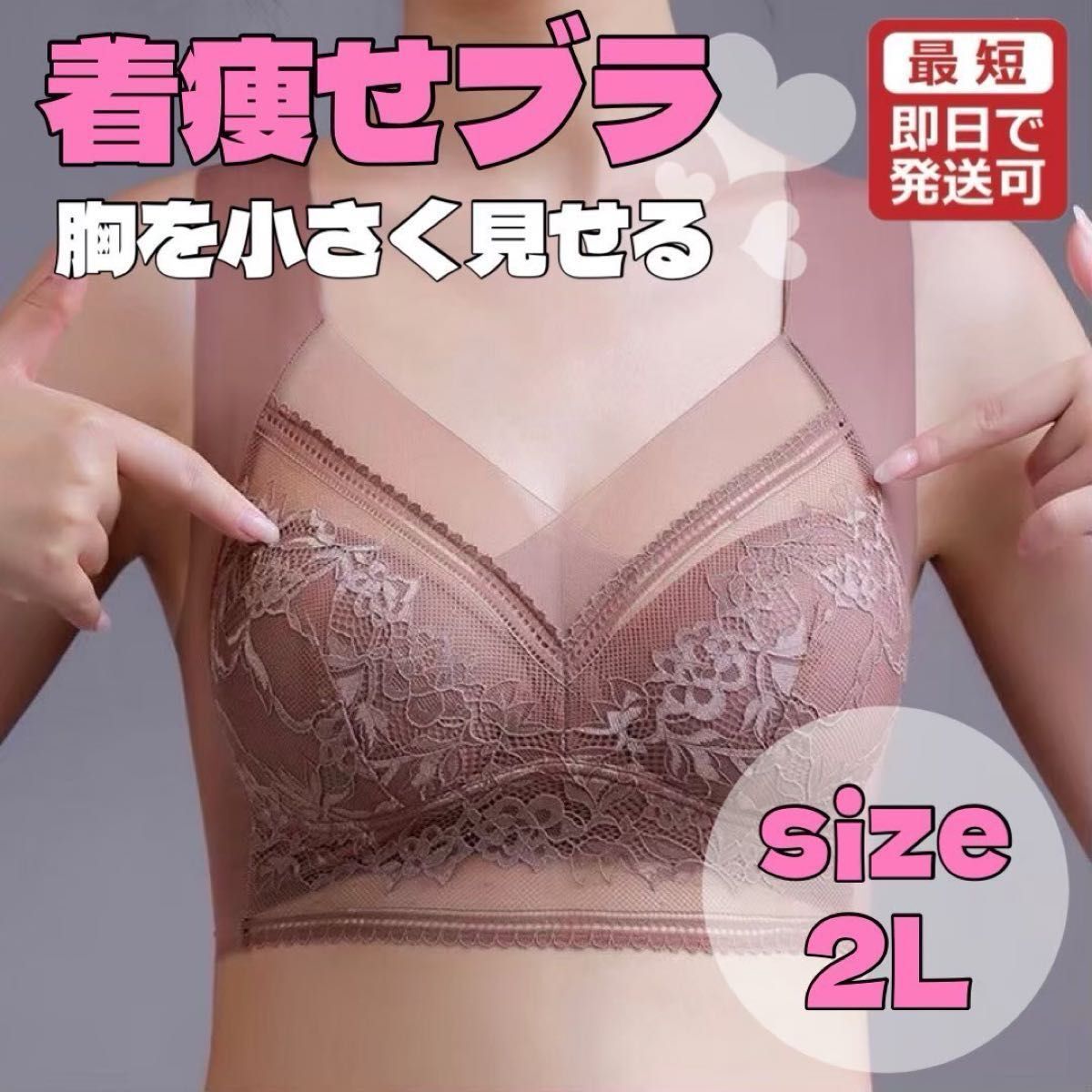 - 胸を小さく見せるブラ 単品 シームレス ナイトブラ ノンワイヤー 2L マロン 快適