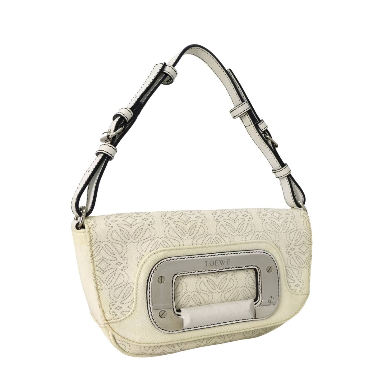 > 本物■ロエベ■アナグラム ショルダー ベージュホワイト PVC レザー シルバー ショルダーバッグ ハンドバッグ