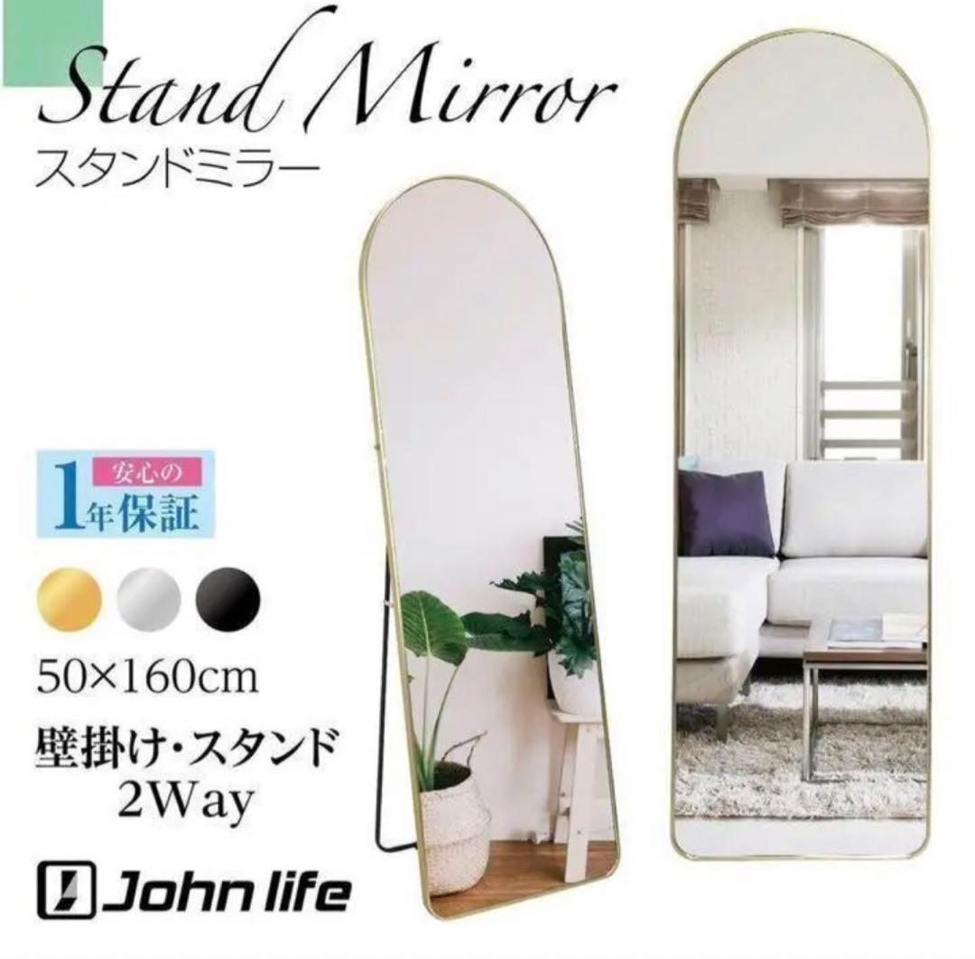 - 格安973-5スタンドミラー アーチ型160cmx50cm 全身鏡 姿見黒 金 シルバー