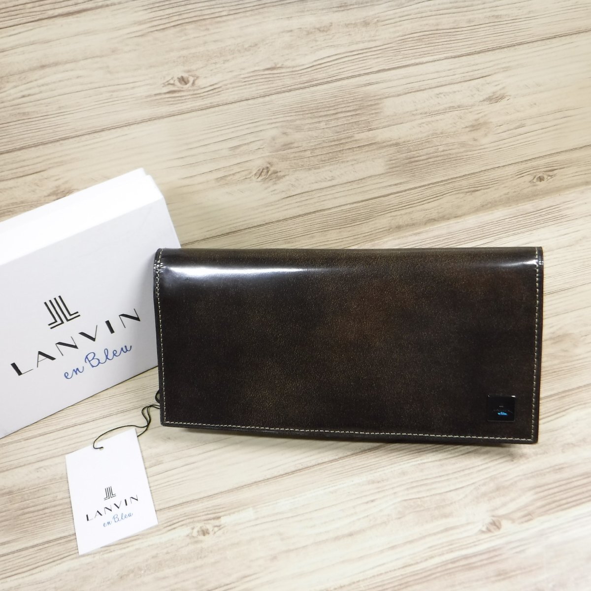 - QQ592 ランバン オンブルー 新品 光沢ガラスレザー 長財布 牛革 LANVIN en Bleu カード12枚収納 メンズ レディース