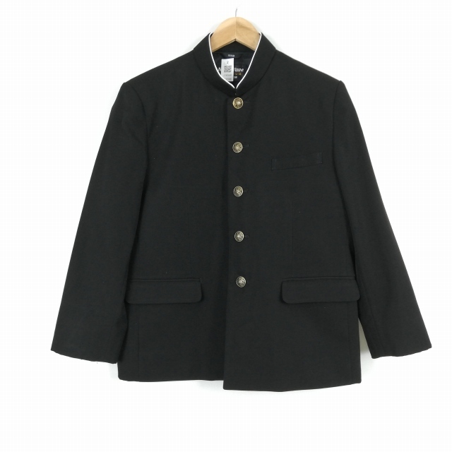 - 学生服 学ラン 155B 男子 富士ヨット Nano Wave 上着 丸洗い可 ウール混 標準型学生服 ラウンドカラー カシドス 黒 中古 ランクC a3 JJ6568