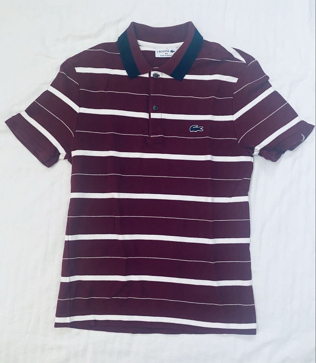 > 中古 M LACOSTE ラコステ/フレンチラコステ/フランスラコステ/ポロシャツ/3/コットン/ワインレッド ストライプ/フランス製