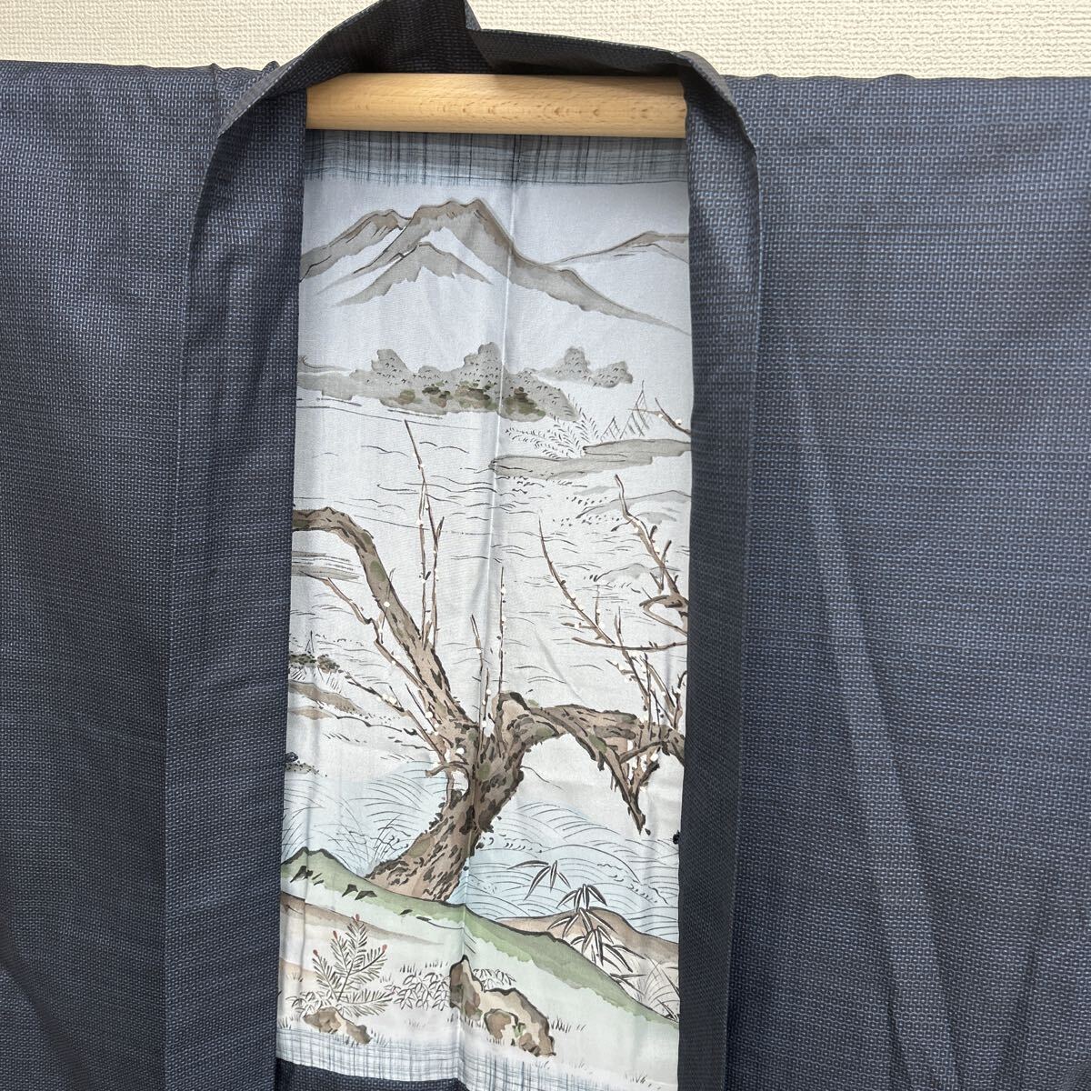 - メンズ 大島紬 藍泥染め 羽織り 正絹 W-4112