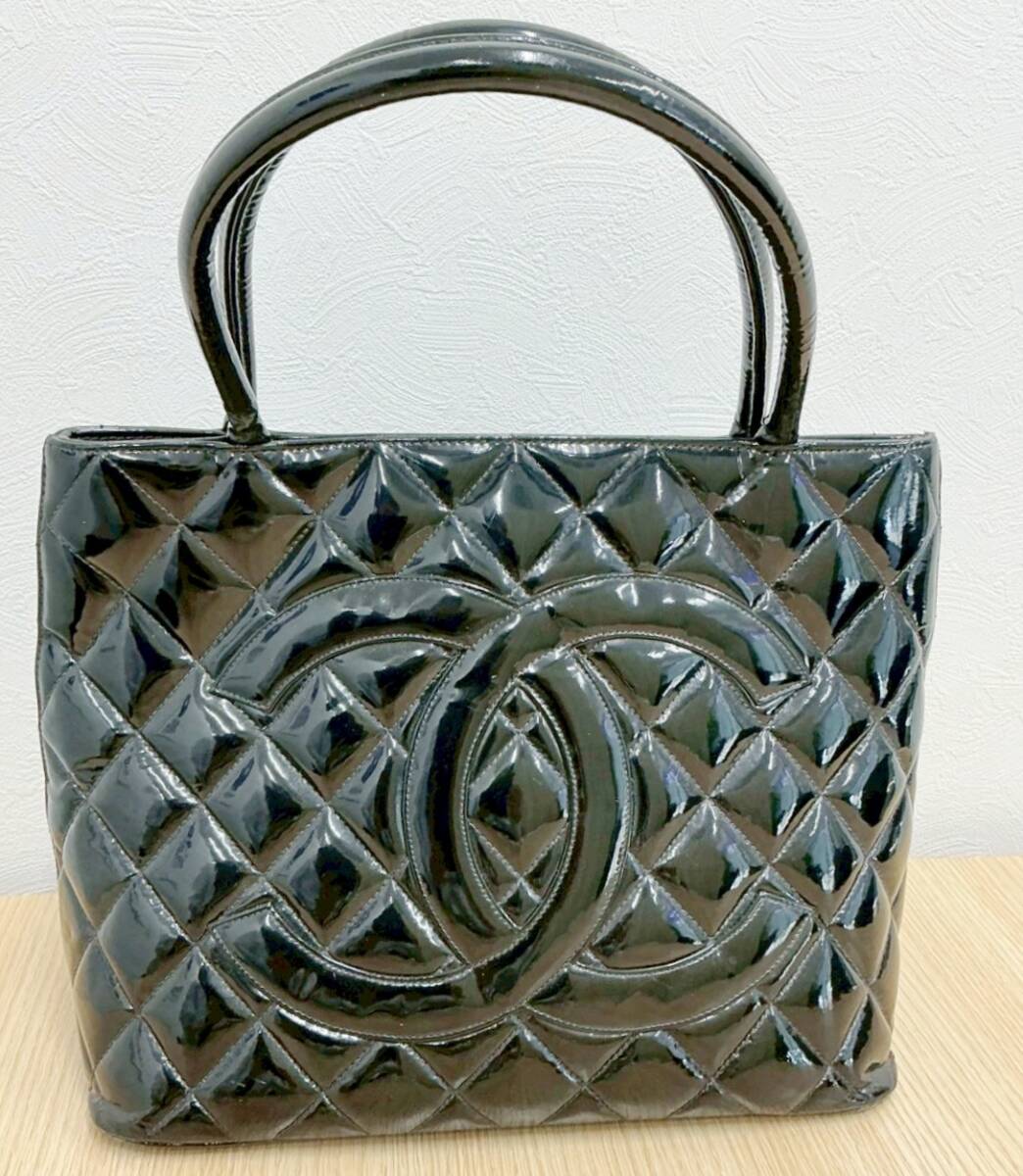- 1円~ CHANEL シャネル 復刻トート ココマーク パテント エナメル ハンドバッグ シルバー金具 ブラック レディース