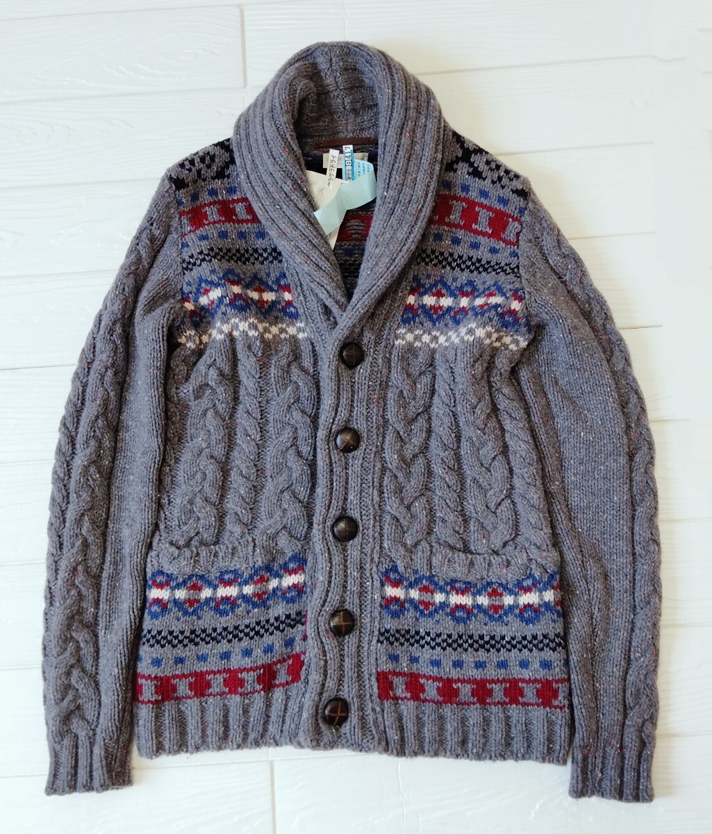 > roberto collina*ロベルトコリーナ*クリーニング済*メンズカーディガン*グレー系*アラン*フェアアイル*46*ニット*肉厚*カウチン*イタリア製