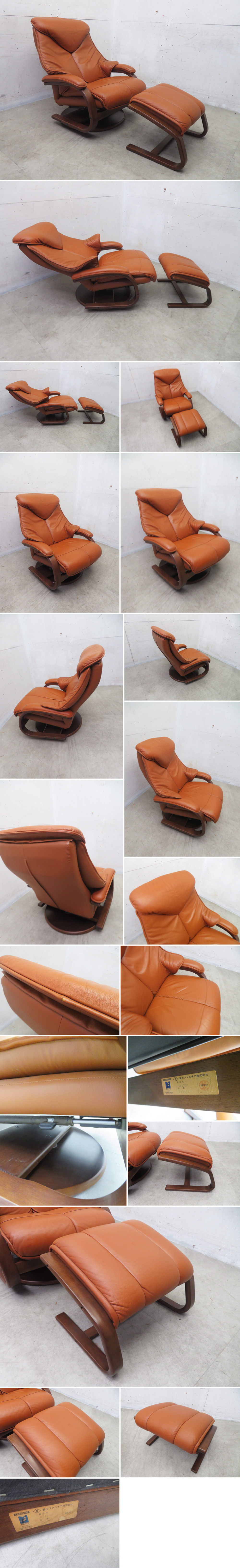> ■P837■美品■本革■フジファニチャー■冨士ファニチャ■リクライナー&オットマン■1P■パーソナルチェア■北欧モダン■