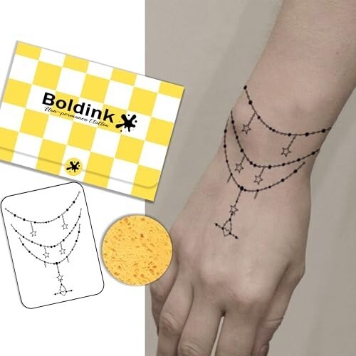 - Boldink ジャグアタトゥーシール ネックレス風 星・ハート 2枚 防水 2週間長持ち 手首・腕用 レディース