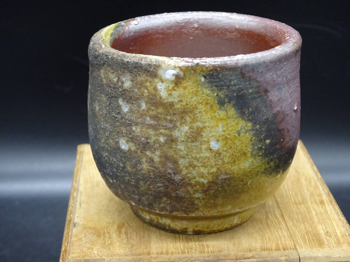 - 備前焼 作者不詳 ★備前窯変ぐいのみ 合箱、黄布付 酒器 茶碗 壺 茶道具
