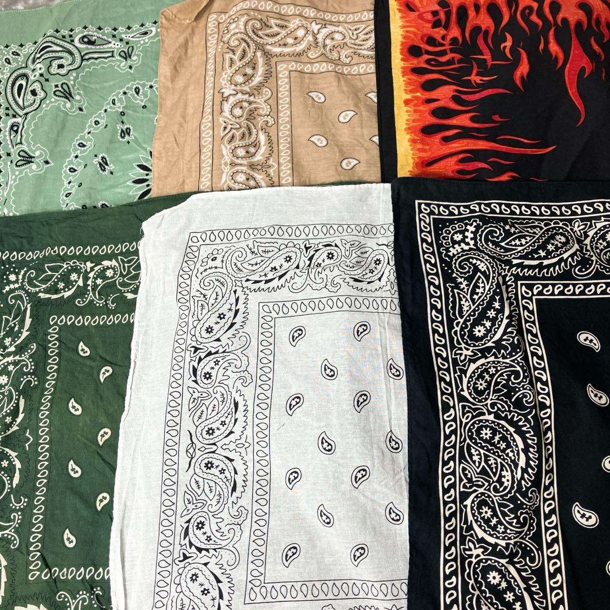 > バンダナ 6枚セット ペイズリー カラーmix 黒ブラック グリーン緑 白ホワイト ファイヤーUS古着小物アクセント 00s〜 格安セット アソート