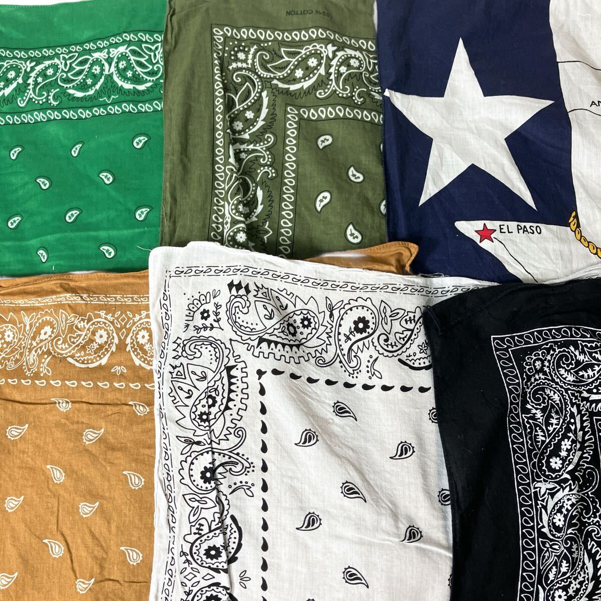 - バンダナ 6枚セット ペイズリー カラーmix 黒ブラック グリーン緑 白ホワイト US古着 小物 アクセント 00s〜 格安セットアソート
