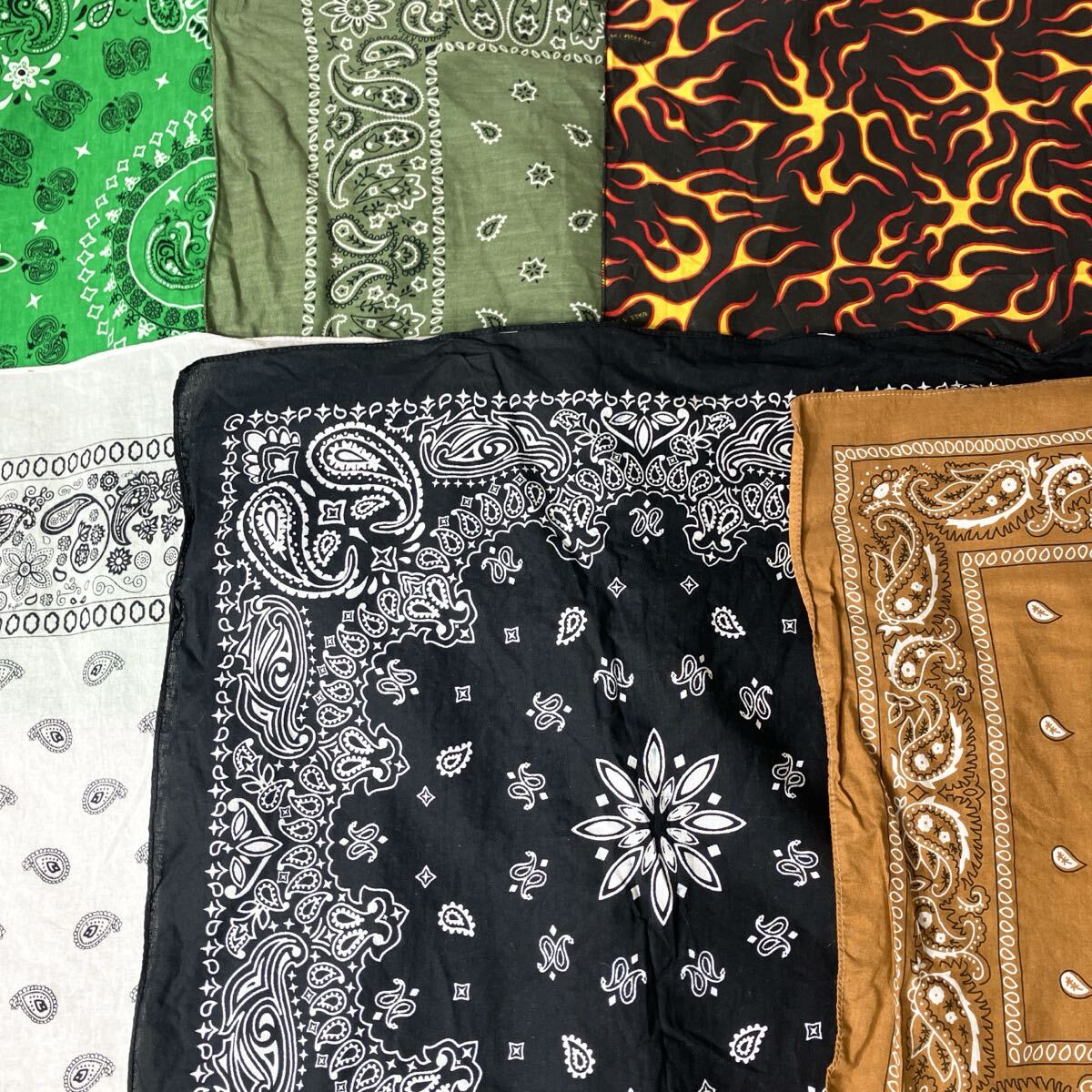 > バンダナ 6枚セット ペイズリー カラーmix 黒ブラック グリーン緑 白ホワイト US古着小物アクセント 00s〜 格安セット アソート ファイヤー